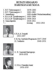 Sumber : wikipedia.org, buku berjudul Jejak Sidoarjo oleh Tim Penelusur Sejarah Sidoarjo, dan berbagai sumber lain