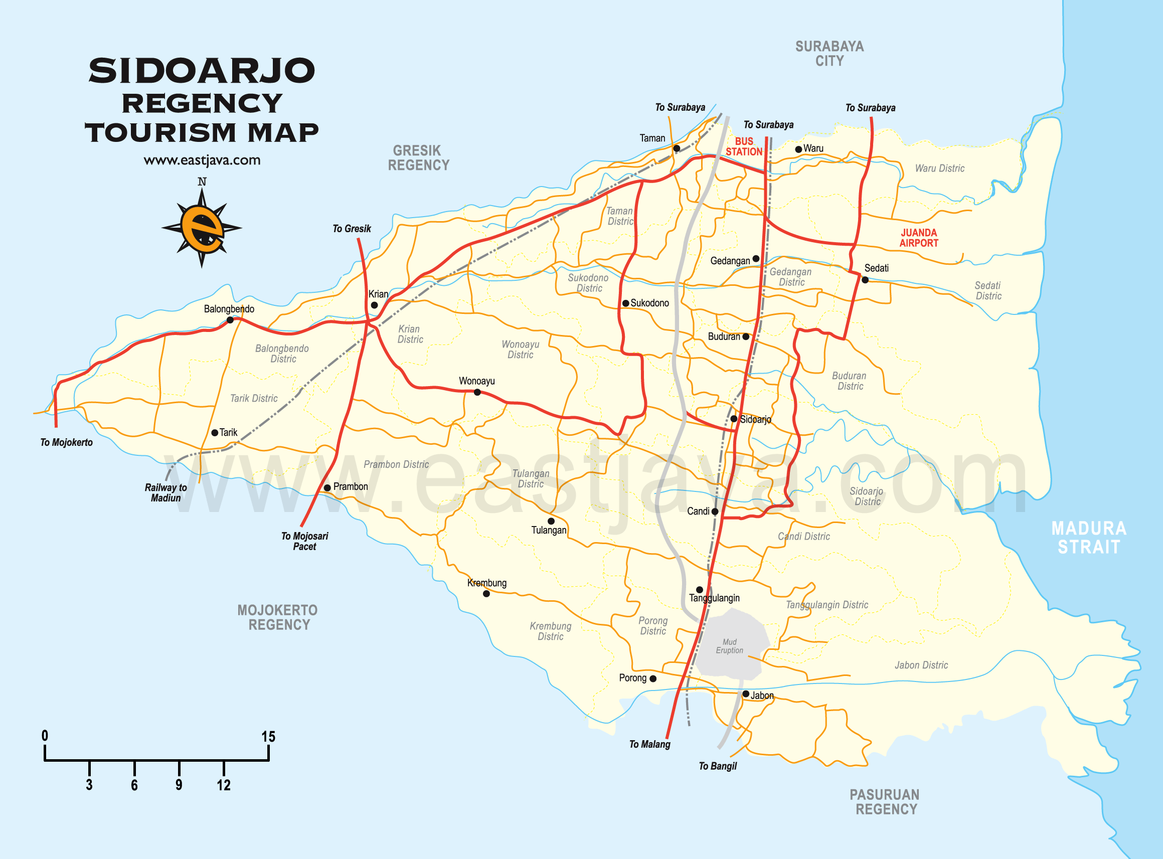 • Sebelah Utara    : Kota Surabaya dan Kabupaten Gresik