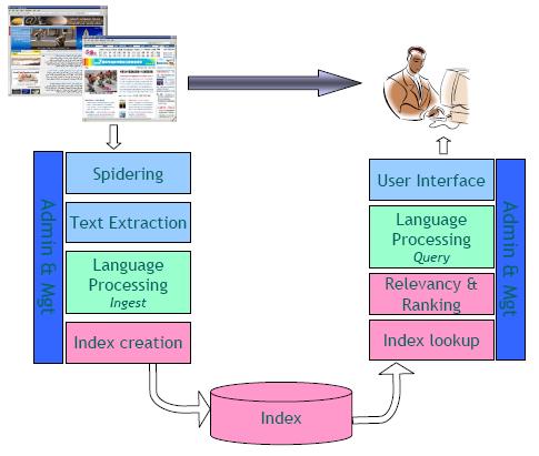 Jantung dari semua search engine adalah konsep indexing yaitu melakukan proses pada data asli menjadi pencarian sangat efisien berdasarkan referensi silang untuk memfasilitasi rapid searching. Untuk mencari sejumlah besar text secara cepat, pertama harus membuat index text tersebut dan melakukan konversi ke format yang dapat membuat pencarian lebih cepat, mengeliminasi proses urutan scanning yang lambat. Proses konversi ini disebut indexing dan outputnya disebut index.