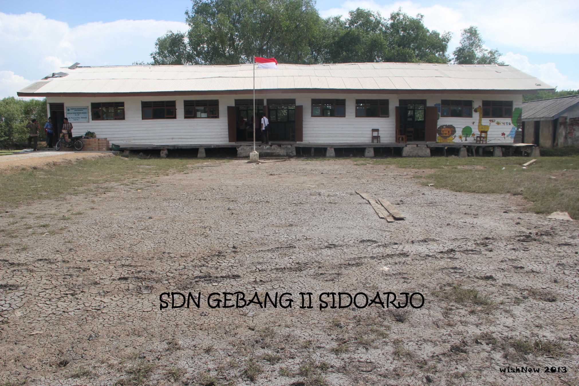 Saia mendapat tugas menjadi fasilitator di SDN Gebang II Sidoarjo. Terletak di kecamatan Sidoarjo dengan lokasi yang strategis, hampir tak tampak di peta karena sekolah ini berada di tambak,bukan di daratan. Menuju lokasi ini bisa melalui jalan darat,lebar jalan yang hanya dapat dilalui satu ban motor saja. kiri kanan jalan jelas tambak dunk, bisa kebayang kan ya klo tiba-tiba tergelincir π Jalan darat tertutup total jika musim penghujan datang, berasa lautan deh. Alternatif transportasi, kapal motor ala kadarnya ditempuh selama 1,5 jam. cekidot.