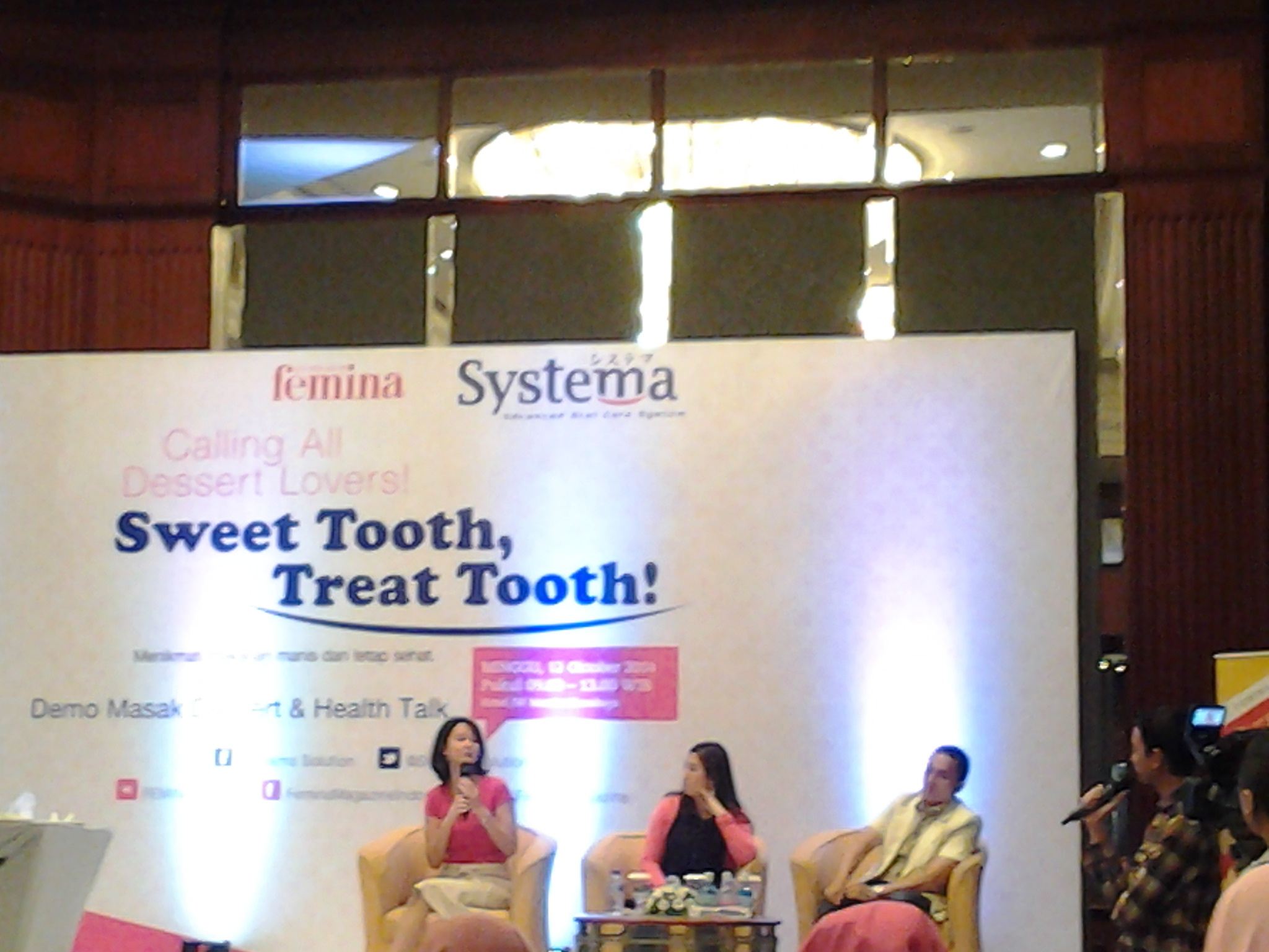 Talkshow kali ini Hasil kerjasama Femina, Systema Nano, dan Dapur Coklat. Menghadirkan pembicara-pembicara yang handal di bidangnya. Absen satu-satu yak, Ada Ibu Emilia Achmadi, seorang Nutrisionis, Ada Mbak Monica Raharja as Brand Manager Systema, Ada Dokter gigi Taufan Bramantoro sekaligus Dosen, Peneliti, Konsultan di UNAIR Bidang Kesehatan Gigi Masyarakat.