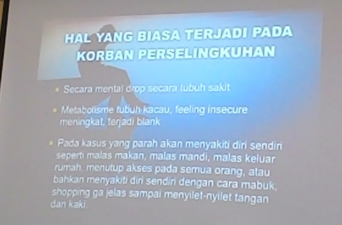KDRT. Naaahhh teh Irma Rahayu dengan suara lantang dan gaya bahasa ceplas ceplos membangunkan para peserta dari pusing pala princess-nya. Teh irma tidak membahas tentang poligami karena sudah dikupas tuntas teh aisha, lagian teh irma gak pernah menjalani hidup dipoligami tapiiii kalo tentang KDRT dan perselingkuhan, musti simak baek-baek ni kisah teh irma yang mengharu biru sukses bikin saia melongo, enggak nyangka gitu.