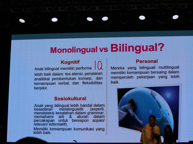 Mbak vera menekankan, untuk mengoptimalkan upaya penyerapan bahasa asing pada anak dibutuhkan komitmen, konsistensi dan system support di sekitar anak. “Orangtua harus menciptakan lingkungan yang mendukung untuk anak bisa mengembangkan kemampuan berbahasa asingnya.” ujarnya.