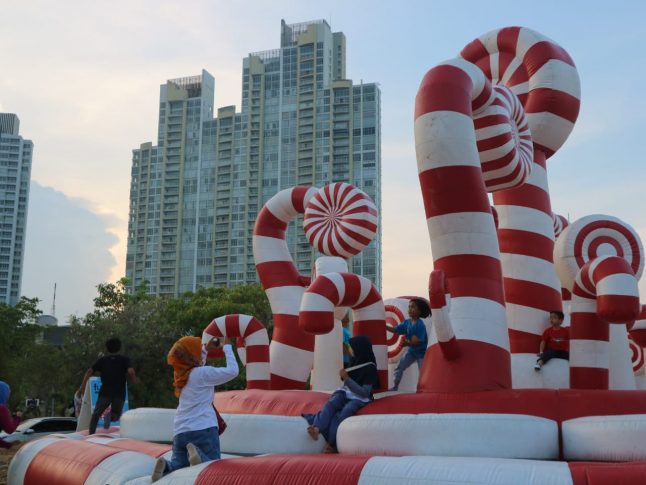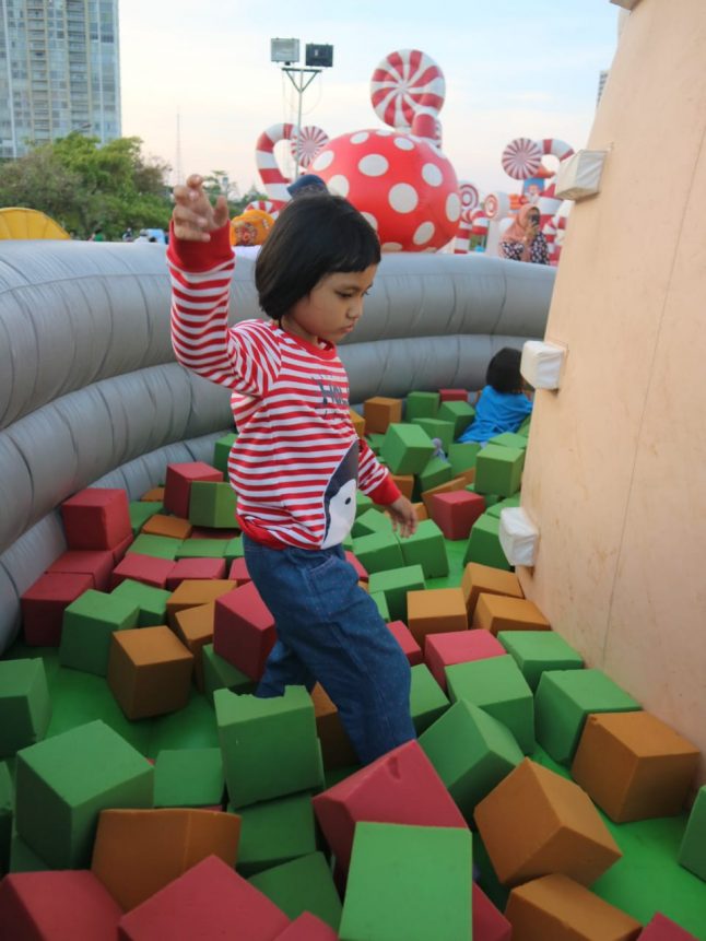 Arena Candy Cane ini nggemesin loh bentuknya, pengen ngemut balon candy nya rasanya hihihi. Arena ini terbuka banget, gak ada penahan di sekelilingnya. Jadi anak leluasa maen kejar – kejar an disini. Lari lari keliling arena candy juga worth it banget, menguras keringat. Dan enak banget dipake maen petak umpet loh hahaha. Coba liat deh candy candy nya gede tinggi, mau ngumpet dibalik candy ya gak bakal keliatan klo gak dari dekat wkwkwk.